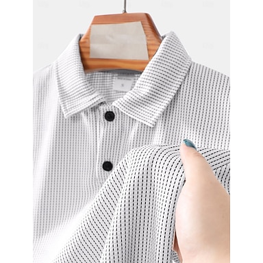 Herren Waffel-Poloshirts Textur Lässig Sport Revers Gerippter Polokragen Kurzarm Mode Basic Einfach Klassisch Rein Sommer Frühling Normale Passform Blau Schwarz Weiß Koffee Orange Grau