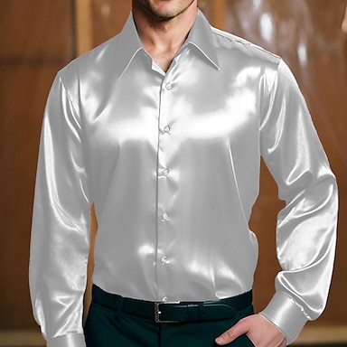 Herren Hemd Seidenartig Satinhemd Kleidhemd Freizeithemd Knopfhemd Einfach Formell Geschäft Schwarz Weiß Gelb Rote Langarm Revers Frühling & Herbst Ganzjahres Bekleidung