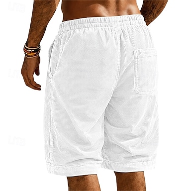 Herren Shorts Freizeitshorts Cordshorts Tasche Elastischer Bund Einfach Einheitliche Farbe Komfort Atmungsaktiv Knielang Outdoor Urlaub Alltagskleidung Urlaub Mode Schwarz Weiß Mikroelastisch