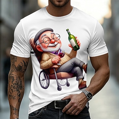 Herren 3D Zeichentrick Alter Mann T Shirt Kurzarm T-Shirt 3D-Druck Rundhalsausschnitt Hemd Übertrieben Designer Club Party Ferien Weiß Sommer Frühling Bekleidung S M L XL XXL XXXL