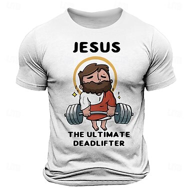Herren Bibel Lustiges Jesus T-Shirt Kurzarm T-Shirt 3D Druck Rundhals-Shirt Designer Casual Party Feiertag Weiß Sommer Frühling Bekleidung