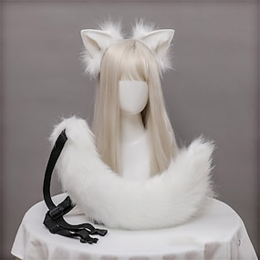 Plüsch-Fuchsohren und -schwanz, Cosplay-Zubehör, handgefertigte Simulation, Tierohren, Haarreifen und Schwanz-Schmuckset
