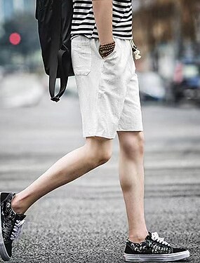 Herren Leinenshorts Sommershorts Kordelzug Elastischer Bund Fronttasche Einfach Komfort Weich Knielang Lässig Täglich Mode Klassicher Stil Schwarz Weiß