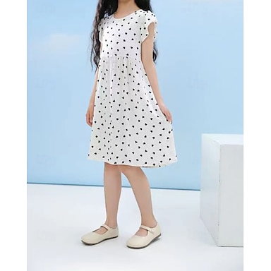 Kinder Mädchen Kleid Blume Kurzarm Outdoor Gerafft Niedlich Basic Baumwolle Knielang Freizeitkleid Blumenkleid Sommer Ab 4 Jahren Weiß