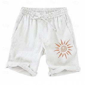 Herren Shorts Leinenshorts Sommershorts Strandshorts Kordelzug Elastischer Bund Grafik Sonne Weich Atmungsaktiv Knielang Lässig Täglich Strand Hawaiianisch Designer Blau Schwarz Unelastisch