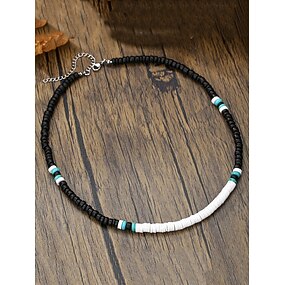 handgefertigte Halskette aus Natursteinperlen für Männer – Vintage-Choker aus Türkis und schwarzem Achat im Boho-Stil, Stammesschmuck für Strand, Reisen und Freizeit