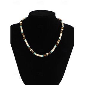 Herrenkette aus Naturholzperlen mit türkisfarbenen Akzenten, Boho-Surfer-Stil, verstellbarer Schmuck für Strand-, Festival- und Freizeitoutfits