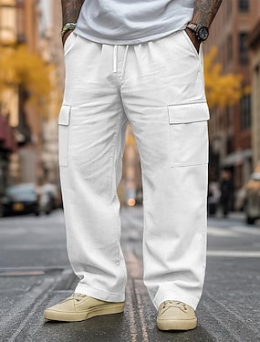 Herren Leinenhosen Hose Sommerhose Mehrere Taschen Gerader Schnitt Einfach Komfort Atmungsaktiv Volle Länge Outdoor Täglich Ausgehen Mode Streetwear Schwarz Weiß
