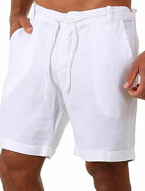 Herren Shorts Leinenshorts Sommershorts Kordelzug Tasche Elastischer Bund Einfach Komfort Atmungsaktiv Kurz Lässig Täglich Ferien Mode Klassicher Stil Schwarz Weiß