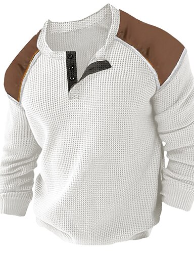 Herren Waffel-Henley-Hemd T-Shirt Farbblock Henley Strasse Urlaub Langarm Bekleidung Modisch Designer Basic