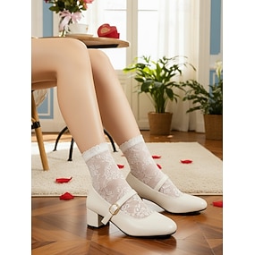 Bequeme Damen-Pumps aus Spitze, runde Zehenpartie, niedriger Blockabsatz – ideal für die Mutter der Braut – für festliche Anlässe, in verschiedenen Farben erhältlich