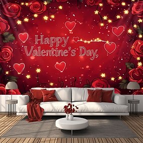 Valentinstag Tapisserie Banner Decke Rose Liebe Herz Niedlich Romantisch 3D Party Wohnzimmer Hintergründe aufnehmen Dekoration für Heiratsanträge Wohndeko
