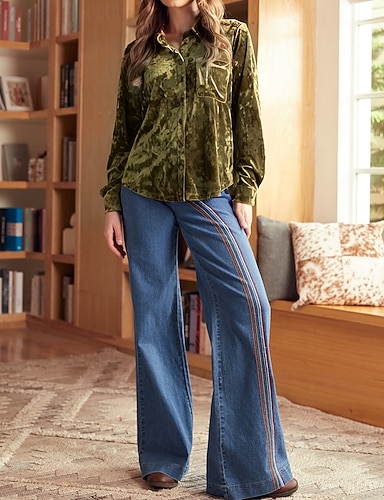Damen Samt Elegant Bluse Knöpfe Einfach Bohemien Vintage Täglich Langarm Hemdkragen Normale Oberteile Täglich Party-Abendmode Ferien Purpur Orange Grün Frühling Herbst Winter