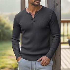 Herren Cordhemd Henley Hemd T-Shirt Langarm Einfarbig Einfach Mode Designer Lässig Gerippt Henley Outdoor Lässig Täglich Sommer Herbst Winter Weiß Grau Hellblau Henley T-Shirt