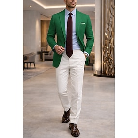 Herren Blazer + Weste + Anzughose Blazer Geschäft Arbeit Party Mode Streetwear Herbst Winter Terylen Farbblock Einreihig Blazer Weiß Champagner Hellgrün Rosa
