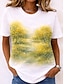 Damen T Shirt Druck Blumen Grafik Mode Stilvoll Klassisch Kurzarm Rundhalsausschnitt Rundhals Lange Oberteile Lässig Täglich Wochenende Grün mit Beige Gelb Purpur Sommer Frühling