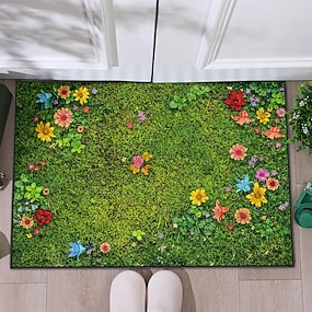 Fußmatte zum St. Patrick's Day mit grünem Gras-Design und leuchtenden Blumen – die perfekte Frühlings-Willkommensmatte für Eingänge und Türen.