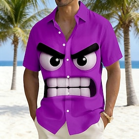 Herren Cartoon Lustig Große Augen Hemd Sommerhemd Knopfhemd Kurzarm Modisch lässig Outdoor Urlaub Alltagskleidung Sommer Frühling Umlegekragen 3D-Druck Hemden mit Kragen Eine Tasche vorne Purpur