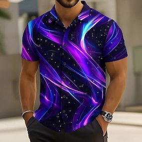 Herren Neon Hemd Knopfhemd Kurzarm Brautkleider schlicht Urlaub Täglich Sommer Umlegekragen Hemden mit Kragen Knopf hoch 3D-Druck Purpur