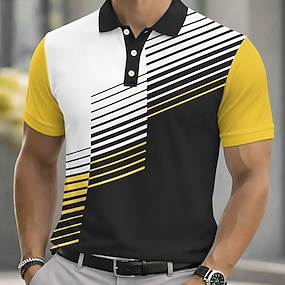 Herren Geometrisch Poloshirts Kurzarm Polo-Shirts Hemden mit Kragen Business-Casual Athleisure Knöpfe Frühling & Sommer Blau Schwarz Gelb
