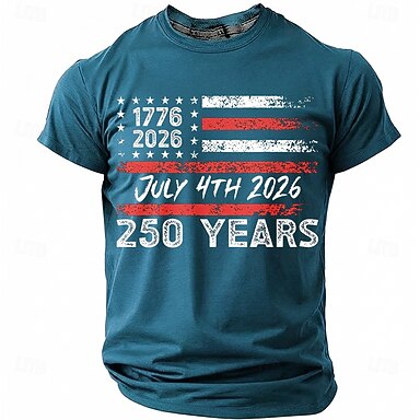4. Juli 2026 250. Herren Einfarbig Amerikanische US-Flagge T Shirt Kurzarm T-Shirt 3D-Druck Rundhalsausschnitt Hemd Vintage-Retro Patriotisch Täglich Festival Blau Schwarz Burgunderrot Sommer Frühling
