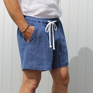 Herren Shorts Leinenshorts Sommershorts Strandshorts Kordelzug Elastischer Bund Einfach Komfort Atmungsaktiv Knielang Täglich Urlaub Ferien Mode Retro Vintage Blau Schwarz Unelastisch