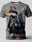 Herren Tiermotiv Lustig T Shirt Kurzarm T-Shirt 3D-Druck Rundhalsausschnitt Hemd Übertrieben Designer Party Ferien Blau Schwarz Weiß Sommer Frühling Bekleidung S M L XL XXL XXXL