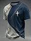 Herren-T-Shirt mit christlichem Kreuzmotiv, weiß-grauem Farbblock-Design, Rundhalsausschnitt, Kurzarm, Rundhalsausschnitt, christliches Glaubenssymbol, spirituelles Geschenk für ihn, Designer-Kleidung