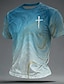 „Im Namen Jesu liegt Kraft“ Herren-T-Shirt mit Bibel-Kreuz-Grafik, Allover-Print, weiß-blauer Farbverlauf, Rundhalsausschnitt, Kurzarm, christliches Geschenk, Designer-Kleidung