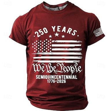 4. Juli 2026 250. Herren Einfarbig Amerikanische US-Flagge T Shirt Kurzarm T-Shirt 3D-Druck Rundhalsausschnitt Hemd Vintage-Retro Patriotisch Täglich Festival Blau Schwarz Burgunderrot Sommer Frühling