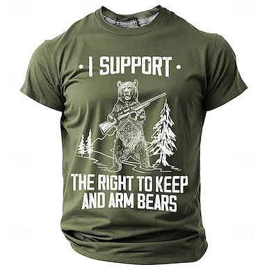 Herren lustiges Grafik-T-Shirt Ich unterstütze das Recht Bären zu halten und zu bewaffnen Wortspiel T-Shirt mit kurzem Ärmel
