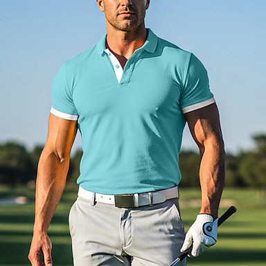 Herren Golfshirt Golf Poloshirts Lässig Arbeit Revers Kurzarm Basic Modern Farbblock Einfach Patchwork Knöpfe Sommer Frühling & Sommer Schmale Passform Blau Meerblau Schwarz Weiß Gelb Rosa Golfshirt