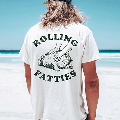 Herren Katze T Shirt Kurzarm T-Shirt 3D-Druck Rundhalsausschnitt Hemd Tropisch Hawaiianisch Urlaub Straße Täglich Weiß Sommer Frühling Bekleidung S M L XL XXL XXXL