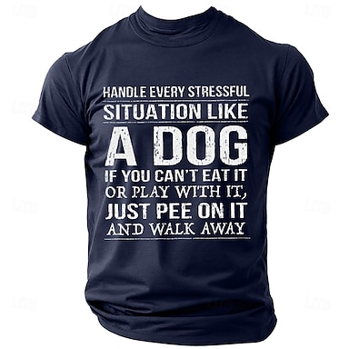 Herren Lustiges Grafik T-Shirt Handle Stress wie ein Hund - Iss es spiel damit pinkel darauf. Humor Zitat Lifestyle T-Shirt Kurzarm