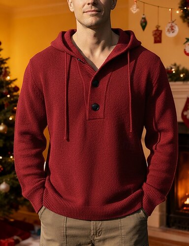 Herren Pullover Hoodie-Pullover Strickpullover Gerippt Stricken Normale Oberteile Knöpfe Einfach Mit Kapuze Mode Basic Urlaub Alltagskleidung Bekleidung Herbst Winter Rot M L XL