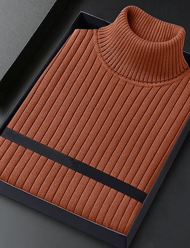 Herren Pullover Strickpullover Gerippt Stricken Normale Oberteile Gestrickt Einfach Rollkragen Mode Basic Urlaub Alltagskleidung Bekleidung Winter Herbst Kamel Wein M L XL