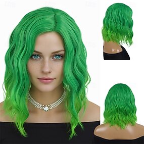 Karnevalsperücke 2026 Grün Ombre Lockig Gewellt Kurz Synthetische Festivalperücke Karneval Parade Cosplay-Kostümfrisur für Damen