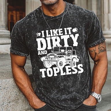 Herren Lustig Offensive T-Shirt Gewaschenes Hemd 100% Baumwolle Kurzarm Grafik Hemd Schwarz Bequemes T-Shirt Straße Täglich Modedesigner-Kleidung