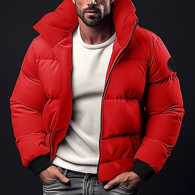 Herren Wintermantel Winterjacke puffer jacket Strickjacke Tasche Tasche mit Reißverschluss Ausgehen Casual Wandern Windundurchlässig Warm Winter Einfarbig Schwarz Rote Hellgrau Armeegrün Pufferjacke