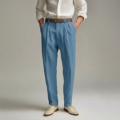 Herren-Anzughose aus Baumwoll-Leinen, leichte, elegante Freizeithose, normale Passform, Frühling & Sommer