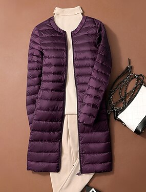 Damen Daunenjacke Mantel Warm Bequem Reißverschluss Tasche Lässig Einfach Outdoor Urlaub Ferien Ausgehen Reisverschluss Lang Mit Kapuze Normale Passform Langarm Oberbekleidung Hellblau Weiß Purpur