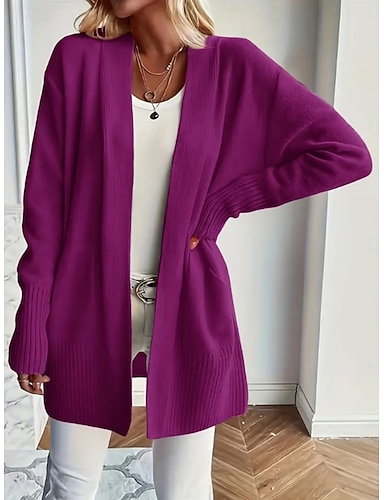 Damen Pullover Strickjacke Elegant Streetwear Lässig Einfarbig V Ausschnitt Tasche Gestrickt Langarm Lange Oberteile Stricken Täglich Ferien Ausgehen Schwarz Rosa Herbst Winter