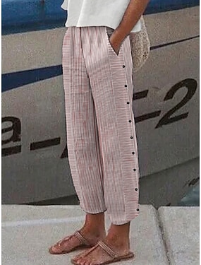 Damen Tapered Hose Chinos Sommerhose Abgeschnittene Hose Mode Streetwear Knöchellang Hohe Taille Gestreift Tasche Elastischer Bund Bequem Weich Mikroelastisch Outdoor Straße Beige Schwarz Rosa Grün