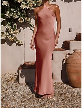 Damen Maxikleid Satinkleid Partykleid Cocktailkleid Elegant Mode Modern Abendgesellschaft Party Hochzeit Normale Passform Einfach Ärmellos Ein-Schulter Blau Schwarz Rosa Grün Sommer Frühling