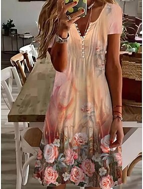 Damen Midikleid Freizeitkleid Blumenkleid Elegant Mode Modern Täglich Outdoor Strand Lässiger Schnitt Blumen Kurzarm Rundhalsausschnitt Rosa Sommer Frühling