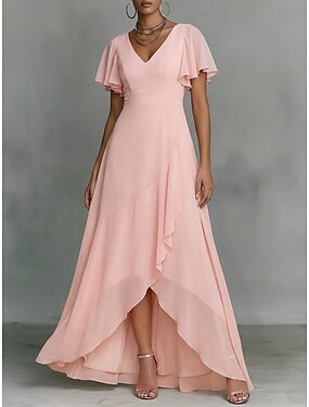 Damen Maxikleid Chiffonkleid Freizeitkleid Schwingkleid Elegant Mode Modern Outdoor Urlaub Ausgehen Normale Passform Einfach Kurzarm V Ausschnitt Blau Hellgrün Rosa Burgunderrot Sommer Frühling