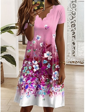 Damen Minikleid T-Shirt-Kleid A Linie Kleid Sommerkleid Elegant Urlaub Lässig Normale Passform Blumen Grafik Kurzarm V Ausschnitt Blau Rosa Purpur Grün Sommer Frühling