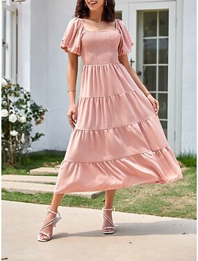 Damen Midikleid Freizeitkleid A Linie Kleid Elegant Mode Modern Puffärmel Outdoor Urlaub Ausgehen Normale Passform Einfach Kurzarm Quadrathals Schwarz Weiß Rosa Armeegrün Sommer Frühling