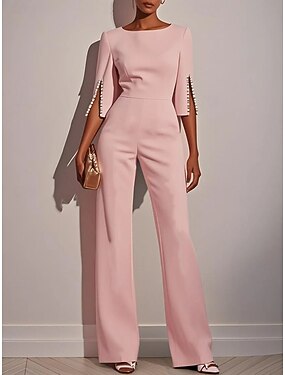 Damen Normal Overall Elegant Einfarbig Kurzarm Gerade Rundhals Mit Gürtel Weites Bein Hochzeit Abschlussball Lässiger Schnitt Schwarz Gelb Rosa Sommer