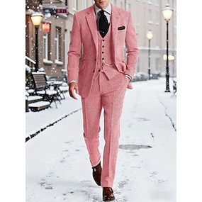 Herren Blazer + Weste + Anzughose Blazer Geschäft Arbeit Hochzeit Mode Streetwear Herbst Winter Terylen Einfarbig 3 Teile Einreihig Blazer Schwarz Champagner Rosa Burgunderrot